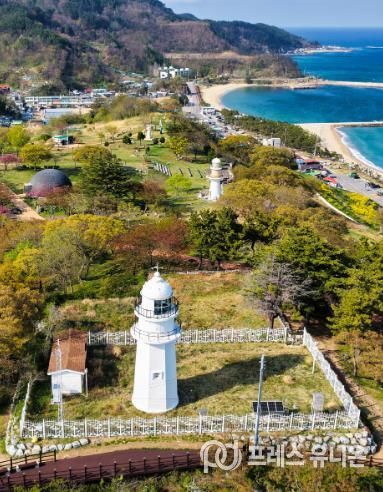 후포리벽화마을을 천천히 즐기고, 계단을 통해 등기산을 오르면 세계 유명 등대를 축소한 조형물과 신석기 유적관이 있는 등기산 공원을 둘러볼 수 있다.