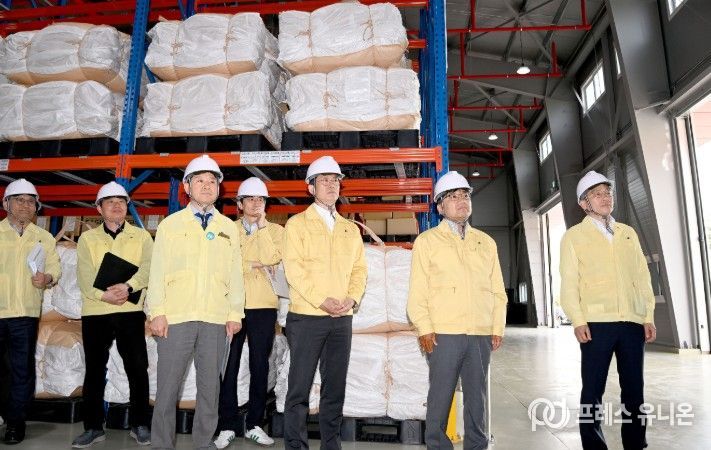 프레스유니온 강찬희 기자 | 전북특별자치도는 행정안전부와 23일 완주군 상관면 재난관리자원 통합관리센터에서 여름철 자연재난 대비 재난관리 물품 비축현황 현장점검을 실시했다.