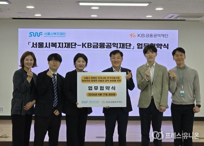 프레스유니온 강찬희 기자 | 서울시복지재단은 17일 KB금융공익재단과 ‘발달장애인 경제·금융 교육’ 업무협약(MOU)을 체결한다고 밝혔다.