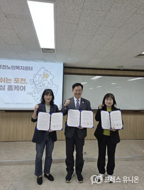 프레스유니온 김성길 기자 | 포천시는 지난 23일 ‘2026년 경기도 통합돌봄 공모사업 지-케어(G-Care+)’ 선정에 따라 경기복지재단, 포천노인복지센터와 협약을 체결했다.