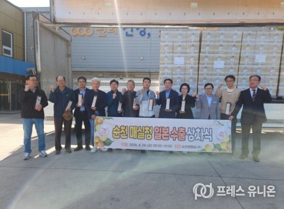 프레스유니온 강찬희 기자 | 순천시는 24일 순천엔매실(주)에서 ‘2026년 순천 매실청 일본 수출 기념 상차식’을 개최했다고 밝혔다.