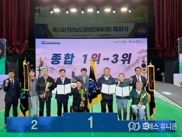 프레스유니온 강찬희 기자 | 순천시가 지난 22일부터 24일까지 3일간 구례군 일원에서 열린 ‘제34회 전라남도장애인체육대회’에서 종합우승을 차지했다.