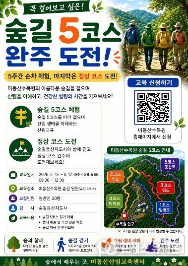 교육은 5월 13일부터 6월 17일까지 매주 수요일 총 5회 진행되며, 숲길등산지도사와 함께 숲길을 직접 걸으며 자연을 체험하는 방식으로 운영된다.