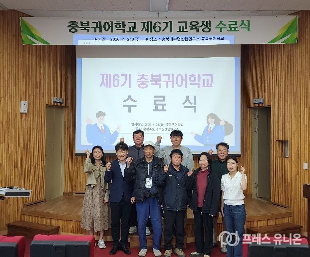 프레스유니온 김성길 기자 | 충청북도내수면산업연구소가 충주시 용탄동 소재 충북귀어학교에서 3월 23일을 시작으로 4월 24일까지 5주간 운영된 교육과정을 성공적으로 마무리하고 총 8명의 수료생을 배출했다.