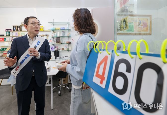 프레스유니온 강찬희 기자 | 이명구 관세청장은 4월 24일 오후 안산 원곡동 다문화거리 현장을 직접 방문하여 환전영업자 검사 과정에 참여하고, 환전업체를 방문하여 주요 의무사항을 안내했다.
