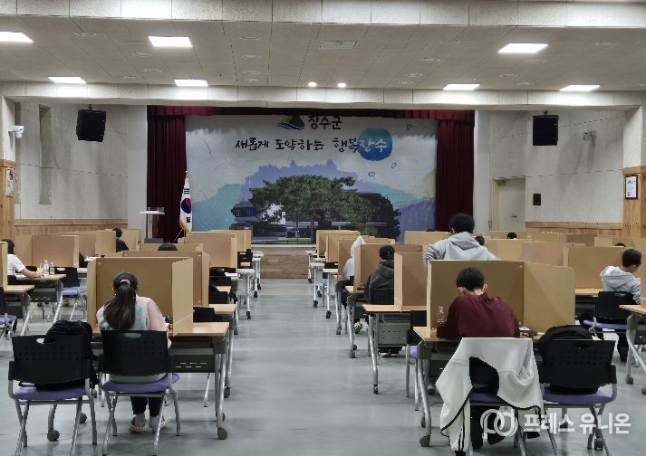 프레스유니온 강찬희 기자 | (재)장수군애향교육진흥재단은 지역 학생들의 학업 성취도 향상과 시험 준비 지원을 위해 지난 25일 장수군청 군민회관에서 ‘1학기 중간고사 대비 스터디캠프’를 운영했다.