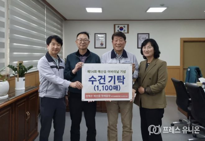 프레스유니온 강찬희 기자 | 예산군 예산읍은 제54회 어버이날을 앞두고 전혁수 명예읍장이 지역 어르신들을 위한 기념품으로 수건 1100장을 기탁했다고 밝혔다.