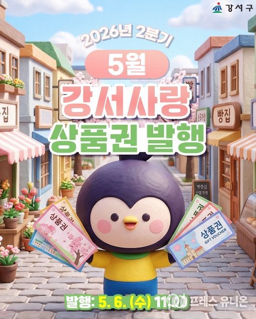 프레스유니온 강찬희 기자 | 서울 강서구는 5월 가정의 달을 맞아 구민의 장바구니 물가 부담을 완화하고, 지역 상권을 활성화하기 위해 ‘강서사랑상품권’ 100억 원과 ‘땡겨요 상품권’ 2억 원을 각각 발행한다고 밝혔다.