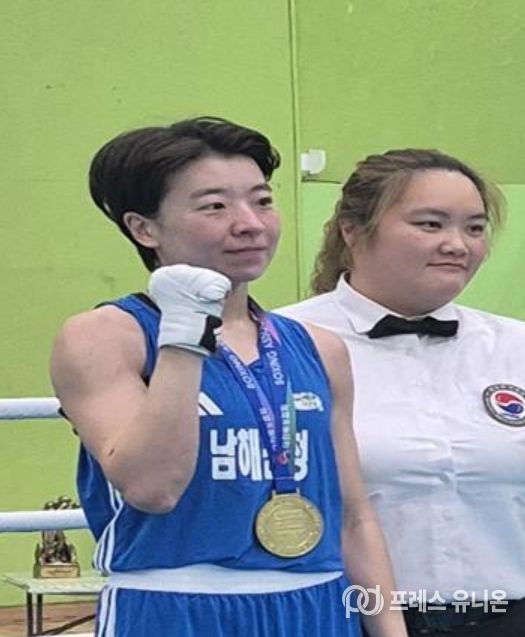 프레스유니온 강찬희 기자 | 남해군은 지난 4월 14일부터 24일까지 경상북도 영주시에서 열린 ‘2026 전국종별복싱선수권대회’에 출전한 남해군청 복싱팀의 강지숙 선수가 여자부 –65kg급에서 금메달을 획득했다고 밝혔다.