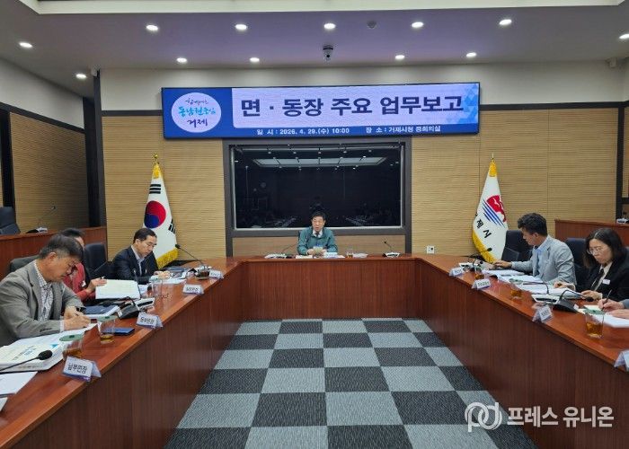 프레스유니온 강찬희 기자 | 거제시는 4월 29일 시청 중회의실에서 민기식 시장 권한대행 주재로 주요 추진업무 보고회를 개최했다.
