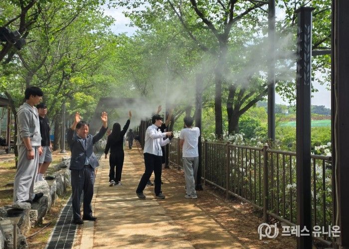 프레스유니온 김성길 기자 | 남양주시 진건읍은 여름철 폭염 대응을 위해 사능천 맨발걷기길에 ‘쿨링포그(Cooling Fog)’를 설치했다고 29일 밝혔다.