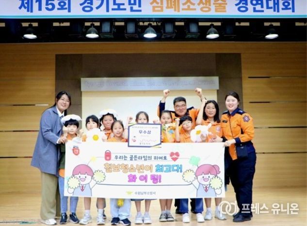 프레스유니온 김성길 기자 | 수원시청소년청년재단 칠보청소년청년센터 청소년방과후아카데미 ‘칠보누리봄’ 소속 청소년들이 4월 28일 경기도재난소방본부가 주최하는‘제15회 경기도민 심폐소생술 경연대회’에 참가해, 청소년부 우수상을 수상하는 값진 성과를 거두었다.