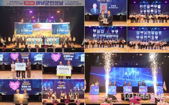 프레스유니온 강찬희 기자 | 해남군은 제53회 해남군민의 날 기념행사를 4월 30일 해남문화예술회관 대공연장에서 군민과 관계자 등 1,000여명이 참석한 가운데 성황리에 개최했다.