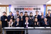 전국신문언론노동조합 강찬희 기자 | 서울특별시의회 도시안전건설위원회 부위원장으로 활동하고 있는 김용호 시의원(국민의힘, 용산1)은 지난 12월 10일 서울시의회 별관에서 개최된 (사)서울시상점가전통시장연합회와 태백시, 태백농협 협동조합, 태백시 농공단지 연합회의 업무협약(MOU) 체결식에 참석해 서울과 태백 간 지역경제 상생 협력의 의미를 강조하며 실질적인 성과 창출을 다짐했다. 이날 협약은 전통시장 활성화와 지역 우수제품의 판로 확대, 지속 가능한 상생협력 체계 구축을 목적으로 김 의원을 비롯해 (사)서울시상점가전통시장연합회 반재선 이사장과 연합회 임원, 이상호 태백시장, 김병두 태백농협 협동조합장, 최이호 태백시 농공단지 연합회장, 태백시청 관계 공무원 등이 참석했다. 본 협약에 따라 각 기관은 ▲서울시 상점가·전통시장 활성화와 태백시 농축산물 및 농공단지 우수제품의 판로 확대 ▲직거래장터, 특별전, 팝업스토어 등 온·오프라인 공동 판촉행사 추진 ▲정기적인 상호 방문과 교류를 통한 우수사례 공유 ▲26년 하반기 김장김치 대축전 시 태백시와의 협력 등 다양한 분야에서 상생하기로 했다. 김 의원은 서울–지방