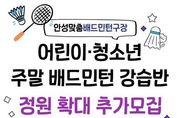 전국신문언론노동조합 김성길 기자 | 안성시시설관리공단은 안성 시민 생활체육 활성화를 위해 현재 운영 중인 주말 어린이・청소년 배드민턴 강습반 정원을 확대하고 추가 수강생을 모집한다고 밝혔다. 이번 주말 어린이・청소년 배드민턴 강습반은 개설 이후 학부모와 수강생들의 높은 관심 속에 연일 정원이 마감될 정도로 큰 호응을 얻고 있다. 특히 주말을 활용해 어린이와 청소년들이 체계적으로 생활 체육을 접할 수 있다는 점에서 학부모들의 만족도가 높은 프로그램으로 자리 잡고 있다. 공단은 이러한 시민 수요를 적극 반영하기 위해 강습반 정원을 기존보다 확대하고, 오는 3월 23일 오전 9시부터 3월 31일 오후 10시까지 초등학생부터 고등학생까지의 어린이·청소년을 대상으로 선착순 10명을 추가 모집한다. 신청은 실내체육관 사무실에 전화로 문의한 뒤 방문 접수로 진행될 예정이다. 이정찬 이사장은 “시민들의 높은 관심에 부응하기 위해 앞으로도 누구나 쉽게 참여할 수 있는 생활체육 환경을 만들어 가겠다”고 전했다. 현재 안성시시설관리공단에서는 시민들의 건강증진을 위하여 주말 강습반 외 매주 2회(화,목) 오전‧오후‧저녁