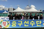 전국신문언론노동조합 조창제 기자 | 부산시민들의 축제인 ‘제36회 부산시민체육대축전’이 11월 29일부터 30일까지 양 일간 사직실내체육관 등 14개소에서 성황리에 개최됐다. 29일에 진행된 16개 구․군 선수단 입장식 퍼포먼스에서 중구는 ‘자갈치 수산’ 컨셉으로 자갈치 시장을 널리 알릴 수 있는 인상적인 퍼포먼스를 선보였다. 30일에는 종목별 대회가 개최됐으며, 중구에서는 총10개 종목에 120여명이 참가했다. 이 가운데 게이트볼 종목에서 우승을 차지하는 쾌거를 거두어 부산 최강임을 입증했다. 또한 종목별 경기 참가현황 및 개회식 참여인원을 종합적으로 평가하여 수여하는 화합상을 수상했다.