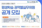 전국신문언론노동조합 기자 | 광명시가 시민 주도의 생활권 중심 평생학습 정책을 강화하기 위해 ‘제4기 평생학습 권역별실무위원회’ 신규 위원 100명을 공개 모집한다. 평생학습 권역별실무위원회는 마을 단위의 학습 의제를 발굴하고 현장 맞춤형 프로그램을 기획·운영하는 민관 협력 기구다. 위원회는 ▲으뜸터(광명1~3동) ▲다울마을(광명4~7동) ▲철산지기(철산1~4동) ▲하안처럼(하안1~4동) ▲예터지기(소하·일직·학온동) 등 5개 권역으로 구성된다. 지원 자격은 광명시에 주민등록이 되어 있는 만 19세 이상 시민이라면 누구나 가능하며, 해당 권역 소재 사업장이나 기관·단체 근무자도 신청할 수 있다. 선발된 위원은 4월 1일부터 2년간 ▲마을 평생학습 의제 발굴 및 사업 제안 ▲마을배움터 프로그램 기획 및 운영 ▲평생학습축제 기획·참여 등 지역 학습 생태계 조성을 위한 핵심 역할을 수행하게 된다. 모집 기간은 오는 2월 19일부터 2월 27일까지다. 접수는 이메일 또는 광명시 평생학습원 방문을 통해 가능하다. 시는 3월 중 서류심사와 면접을 거쳐 최종 위원을 선발하고, 3월 말
