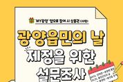 전국신문언론노동조합 강찬희 기자 | 광양읍민의 날 제정 추진위원회는 ‘광양읍민의 날’ 제정을 위해 오는 3월 17일부터 4월 12일까지 광양읍 주민을 대상으로 설문조사를 실시한다고 밝혔다. 이번 설문조사는 지역의 정체성을 강화하고 읍민 화합과 자긍심을 높이기 위한 ‘광양읍민의 날’ 제정을 추진하는 과정에서 많은 광양읍민들이 공감할 수 있는 의미 있는 날을 정하기 위해 주민 의견을 수렴하고자 마련됐다. 추진위원회는 지난 3월 6일 제1차 회의를 열어 광양읍민의 날 제정 필요성과 후보 일자에 대해 논의했으며, 주민 의견을 반영해 기념일을 정하기 위해 설문조사를 진행하기로 했다. 설문은 ▲읍민의 날 제정에 대한 찬성 여부 ▲기념일 선호 일자 등 총 2개 문항으로 구성됐다. 기념일 후보는 ▲4월 1일(인덕면, 광양면 통합일) ▲5월 25일(광양군민의 날 시행일) ▲8월 14일(광양군에서 광양읍 승격일) 등 3개 날짜 중 선택하는 방식이다. 설문조사는 모바일 앱 ‘MY광양’을 통해 참여할 수 있으며, 홍보물에 안내된 QR 코드를 이용해 앱을 내려받은 뒤 설문에 참여하면 된다. 앱을