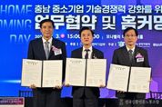 전국신문언론노동조합 강찬희 기자 | 충남도는 3일 아산 디바인밸리에서 ‘충남 중소기업 기술 경쟁력 강화를 위한 업무협약식’을 개최했다. 김태흠 지사와 박주선 기술보증기금 전무이사, 서규석 충남테크노파크 원장, 도내 중소기업인 등 300여 명이 참석한 가운데, 업무협약식을 진행했다. 이날 도는 기술보증기금·충남테크노파크와 함께 중소기업의 연구개발(R·D)부터 기술 이전·사업화에 이르는 전주기 지원체계 구축을 목표로 ‘충남 중소기업 기술 경쟁력 강화를 위한 업무협약’을 체결했다. 이번 협약으로 도는 연구개발 전주기 지원과 기술 이전 및 사업화 촉진을 위한 정책적·재정적 지원에 나선다. 기보는 기술 평가·보증·기술 이전 등 금융·비금융 지원을 수행하고, 충남TP는 연구개발 지원 절차 구축, 기술 이전 연계, 사업화 촉진 등 기술 기반 기업 지원 기능을 강화하기로 했다. 도는 이번 협약으로 기보와 협업해 핵심 사업인 ‘기업 맞춤 연구개발-사업화 전주기 지원사업’과 ‘소부장기업 기술이전 사업화 지원사업’을 본격 시행한다. 기업 맞춤 연구개발-사업화 전주기 지원사업을 통해 중소기업을