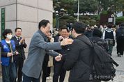 전국신문언론노동조합 강찬희 기자 | 임종식 경북교육감은 13일 아침 2026학년도 대학수학능력시험 제80(포항)지구 제1시험장인 포항고등학교를 찾아 수험생들에게 응원의 메시지를 전했다. 임 교육감은 오전 7시경 포항고등학교 정문 앞에서 수험생들을 맞이하며, “끝까지 최선을 다하면 좋은 결과가 있을 것”이라며 따뜻한 응원의 메시지를 전했다. 긴장된 표정으로 시험장에 들어서는 학생들에게는 “수고 많았다, 평소 실력 그대로 하면 된다”라며 짧지만, 진심 어린 한마디로 긴장을 풀어주었다. 한편, 경북교육청은 올해 수능을 앞두고 수험생들을 응원하기 위해 ‘교육감의 수능 격려 편지’와 대입 수험생 응원 노래 ‘Dream come true 뮤직비디오 영상’을 제작해, 도 교육청 누리집과 공식 유튜브 채널 ‘맛쿨멋쿨TV’를 통해 공개한 바 있다. 이번 시험장 격려 방문은 이러한 응원 캠페인의 현장 확장 프로그램으로 기획됐다. 임 교육감은 오전 포항고등학교 방문 이후, 시험이 끝난 오후에는 안동시에 있는 성의여자고등학교를 찾아 수험생들을 다시 만나 따뜻한 격려와 응원의 메시지를 전하며, 앞으로의 진로와 꿈을 향한