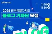 전국신문언론노동조합 김성길 기자 | 전북특별자치도는 도 공식 블로그 ‘전북의 재발견’에서 활동할 2026년 블로그 기자단을 11월 10일부터 30일까지 모집한다. 기자단은 전북의 일상과 여행지, 문화, 생활 정책 등 다양한 지역 소식을 콘텐츠로 제작해 도민과 블로그 방문객에게 소개하는 온라인 홍보 역할을 맡게 된다. 모집 인원은 총 30명으로, 전북에 관심 있는 누구나 지원 가능하다. 합격자는 다음 달 10일 발표되며, 선발된 기자단은 2026년 1월부터 12월까지 1년간 활동하게 된다. 활동 기간 동안 기자단은 월간 온라인 기획회의와 기획 취재 등을 통해 도내 현장을 직접 방문해 취재 콘텐츠를 작성한다. 기자단에게는 작성한 콘텐츠에 대한 원고료가 지급되며, 전북도가 주최하는 행사 및 프로그램에 우선 참여할 수 있는 기회도 제공된다. 또한 활동 실적이 우수한 기자에게는 별도의 인센티브가 부여된다. 김선경 전북특별자치도 소통기획과장은 “블로그 기자단은 도정을 비롯한 전북의 매력을 사람과 현장 중심 이야기로 전달하는 중요한 소통 창구”라며 “전북을 사랑하고 콘텐츠 제작에 관심 있는 분들의 많은 참여를