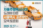 전국신문언론노동조합 강찬희 기자 | 서울특별시의회 교통위원회(위원장 이병윤, 국민의힘, 동대문1)는 2025년 12월 17일 10시, 서울시의회 의원회관 제2대회의실에서 “자율주행택시시대 도래에 따른 서울택시 공존방안 모색 토론회”라는 주제로 토론회를 개최했다. 서울시의회가 주최하고 교통위원회가 주관한 이번 토론회는 이병윤 교통위원장 개회사로 시작됐으며 김동완 서울특별시택시운송사업조합 이사장의 축사와 함께 문성호 서울시 의원이 사회를 맡았다. 자율주행택시에 대한 주제 발제는 한국개발연구원(KDI) 김동영 전문연구원이 진행했으며, 이어지는 토론에서는 이경숙 교통위원회 부위원장이 좌장을 맡아 논의를 이끌었다. 토론자로는 김거중 한국교통연구원 부연구위원, 장정아 아주대학교 연구교수, 이우영 HC택시 대표이사, 박준환 국회입법조사처 팀장, 정준호 서울시 의원, 손형권 택시정책과장이 참여하여 토론이 진행됐다. 이 날 토론회에서는 자율주행 시대의 도래에 발맞춰 택시 산업의 지속 가능한 발전을 위한 준비가 필요하다는 데에 공감대를 형성했다. 아울러 기존 택시 시장과 첨단기술이 상생할 수 있는 자율주행 서비스 도입 방안을 모