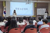 전국신문언론노동조합 김성길 기자 | 충청북도교육청 직속기관 국제교육원 부설 영재교육원은 11월 3일과 4일, 충주와 청주에서 각각 영어영재교육 수료식을 열고, 2025학년도 교육과정을 성공적으로 마무리했다. 초등학교 5학년부터 중학교 2학년 영어영재교육 참여 학생 68명(충주 36명, 청주 32명)을 비롯해 보호자와 담당 교사가 참석해, 한 해 동안의 성과를 함께 나누는 시간을 가졌다. 교육활동 동영상 시청을 시작으로, 학생들의 수료 소감 발표, 수료증 수여 등의 순서로 진행됐으며, 학생 발표 시간에는 큰 호응이 이어졌다. 탄금중학교 1학년 이하율 학생은 “매주 원어민 선생님들과 영어로 학습할 수 있어 유익하고 즐거운 시간이었어요. 벌써 종강이라 아쉽고, 내년에도 꼭 참여하고 싶어요.”라며 소감을 전했다. 올해 영어영재교육은 ▲원어민 교사와 함께하는 영어 수업 ▲리더십‧진로‧세계시민교육 특강 ▲유네스코 아시아태평양 국제이해교육원, 국립외교원 방문 등 현장 체험 학습 ▲충북 청소년 국제포럼 등 다양한 경험을 할 수 있는 과정으로 운영됐다. 참가 학생들은 환경, 사회와 법, 문학, 뉴스와
