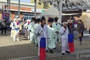전국신문언론노동조합 강찬희 기자 | 지난 11월 29일 11시 청양시장에서는 요란한 풍장 소리와 함께 ‘원홍주등육군상무사(元洪州等六郡商務社) 공문제(公文祭)’가 열렸다. 이번 공문제는 2003년 이후 22년 만에 원홍주등육군상무사(접장 안문원)가 주최한 행사로, 충남역사문화연구원(원장 장기승)의 ‘충남 보부상 공문제 복원 및 전승기반 구축 사업’의 지원을 받아 개최했다. 임소 영접 및 공문제 입장 행차 – 공문제(제사) - 내빈 축사 – 오찬 등의 순서로 진행된 공문제에는 청양지역 주민과 시장 상인 등 100여 명이 참석했다. 풍물패가 임소 영접과 공문제 입장 행차를 이끌었으며 공문제는 유교식 제례로 진행됐다. 일반 제사와 공문제가 구별되는 가장 큰 특징은 공문제에서는 원홍주등육군상무사에서 접장을 지낸 이들의 명단을 적어 놓은 ‘선생선안(先生仙案)’이라 불리는 지방문과 더불어 육군상무사에서 소장하고 있는 청금록·선생안·인장‧인궤 등 각종 공문서와 유품을 모셔 놓고 지낸다는 점이다. 이날 공문제의 초헌관은 청양군수, 아헌관과 종헌관은 육군상무사의 부접장과 접장이 맡아서 제사를 주관했다.
