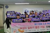 전국신문언론노동조합 강찬희 기자 | 전북특별자치도는 6일 제118회 세계 여성의 날을 맞아 전북여성가족재단, 농협중앙회 전북본부와 함께 여성친화기업 제논전장㈜를 방문해 여성 근로자들을 격려하고 성평등 조직문화 확산을 위한 기념행사를 개최했다. 행사에는 방상윤 전북자치도 복지여성보건국장, 허명숙 전북여성가족재단 원장, 김성훈 농협은행 전북본부장이 참석해 여성 근로자들에게 장미꽃과 빵을 전달하며 세계 여성의 날의 의미를 함께 나누고 근로자들을 격려했다. ‘빵’은 생존권과 노동권을, ‘꽃’은 참정권과 존엄을 상징한다. 이번 행사는 세계 여성의 날의 의미를 되새기고 지역 기업 내 성평등 인식을 높이며 건강한 조직문화를 확산하기 위해 마련됐다. 김은성 제논전장 대표는 성평등 경영선언문을 낭독하며 성평등 가치 확산과 지속가능한 조직문화 조성에 앞장설 것을 약속했다. 제논전장㈜은 자동차 발전기 제어 및 정류장치 관련 전자회로를 개발·생산하는 자동차 전장부품 전문기업으로, 전 세계 31개국 43개 기업과 거래하는 지역 강소기업이다. 전체 직원 32명 가운데 24명이 여성으로, 2017년부터 ‘여성친화