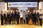 전국신문언론노동조합 강찬희 기자 | 강원특별자치도의회 예산결산특별위원회는 10월 30일 오후 2시 강릉시 스카이베이호텔 경포 그랜드볼룸에서 강원특별자치도 및 강원특별자치도 교육청 예산관계관 등이 참석한 가운데 “2026년 예산안 사전설명회”를 개최했다. 이번 설명회에서 예결특위 위원들은 도 · 도교육청 관계관으로부터 2026년도 재정여건, 예산편성 방향, 주요 사업 등에 대한 설명을 듣고, 내년도 주요 현안에 대한 정보를 공유하기 위해 질의 · 응답 시간을 가졌다. 최승순 위원장은 “새로운 한 해를 준비하는 중요한 시기에 2026년도 예산의 방향을 확인하고 예산심사 준비를 위한 뜻깊은 시간이었다”라면서 “심도 있는 심사를 통해 예산이 적재적소에 쓰일 수 있도록 하여 진정으로 도민이 행복하고, 도민이 편안하고, 도민을 진정으로 위하는 도정 및 교육행정 달성을 위해 예결위원장으로서 책임과 역할을 다할 것”이라고 전했다. 『2026년도 예산안 종합심사』는 오는 12월 1일부터 7일간 진행될 예정이다.