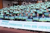 전국신문언론노동조합 김성길 기자 | 전북특별자치도는 31일 도청 공연장에서 도내 사회복지사 약 700여명이 참석한 가운데 ‘2025년 전북특별자치도 사회복지사대회’를 성황리에 개최했다고 밝혔다. 이번 행사는 전북사회복지사협회 창립 50주년을 맞아 도민을 위한 돌봄사회 실현과 전주올림픽의 성공적 유치를 함께 염원하며, 사회복지사들이 ‘하나된 팀(One Team)’으로서 사명감과 전문성을 새롭게 다지는 뜻깊은 시간이었다. 이날 행사는 ▲ 전북사회복지사협회장의 대회사 ▲사회복지사 선서 ▲사회복지 유공자 표창 ▲지방의회 복지대상 시상 ▲김관영 도지사 축사 ▲50주년 기념 문화공연 등 다채로운 순서로 진행됐다.특히 한 해 동안 복지현장에서 헌신한 사회복지사들의 노고를 격려하기 위해 도지사 표창을 비롯한 사회복지 유공자 시상식이 열렸으며, 참석자 간 교류와 화합을 통해 현장의 사기를 높이는 자리가 됐다. 문화공연에서는 신연아 밴드, 호원대 K-POP학과 댄스팀, 가수 하동균 등이 출연해 열정적인 무대를 선보이며 사회복지사들의 재충전과 소통의 시간을 제공했다. 현장에는 웃음과 감동이 어우러지며, 사회복지사로서의 자부심과 연