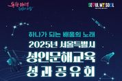 전국신문언론노동조합 강찬희 기자 | 서울시평생교육진흥원은 ‘하나가 되는 배움의 노래’를 주제로 10일 13시부터 17시까지 서울시청 본청 8층 다목적홀에서 ‘2025년 서울시 성인문해교육 성과공유회’를 개최했다. 이번 행사는 성인 문해학습자들이 한 해 동안의 학습 여정에서 얻은 경험과 결실을 나누고, 새로운 배움에 대한 열망을 확인하는 장으로 마련됐다. 이번 행사는 ▲올해로 3회차를 맞은 ‘디지털 문해 골든벨’과 함께 ▲문해 음악 공연 ‘배움의 플레이리스트’ ▲서울지역 문해교육 시화전 시상식 ▲디지털 기기 체험 부스 ▲시화전 수상작 전시 ▲문해교육 체험 부스 등 문해학습자의 성과를 공유하고 학습 의욕을 높이는 다채로운 프로그램들로 구성됐다. 행사의 주요 프로그램으로 ‘디지털 문해 골든벨’이 진행됐다. 서울 지역 문해교육기관 학습자들이 참여해 기초 문해력 문제뿐 아니라 무대에 배치된 디지털 기기를 실제 활용하는 문제에 도전했다. ‘디지털 문해 골든벨’은 전반부는 기초 수준의 문해교육 문제들을 함께 풀며 서로를 격려하는 시간으로, 후반부는 무대에 디지털 기기를 실제로 배치하여 문해학습자의 디지털 기기 활용 역량을 확인하는 시간