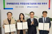 전국신문언론노동조합 김성길 기자 | 전북특별자치도는 공정하고 투명한 행정 실현을 위해 주민감사청구심의회 민간 위원 4명을 위촉했다고 30일 밝혔다. 도는 이날 전북도청에서 위촉식을 열고 학계·법조계·시민단체 등 각 분야의 전문가 4명에게 위촉장을 수여했다. 위원의 임기는 2025년 11월부터 2027년 10월까지 2년이다. 주민감사청구제도는 지방자치법에 따라 2000년부터 시행된 제도로, 지방자치단체의 위법·부당한 행정처분이나 불합리한 행정제도 운영 등에 대해 주민이 일정 수 이상의 연대서명을 통해 직접 감사를 청구하는 제도다. 주민감사청구심의회는 위원장을 맡고 있는 행정부지사를 포함한 내부위원 4명과 도의원 1명을 포함한 외부위원 5명 등 총 9명으로 구성되어 있으며, 감사청구가 접수될 경우 ▲감사청구요건의 적합 여부 ▲감사청구 대상 여부 ▲감사청구인 명부에 기재된 서명 유효 여부 등을 심사해 감사 개시 여부를 결정하고, 심의회에서 감사 개시가 결정되면 도 감사위원회가 감사를 수행한다. 도내 시·군 행정에 관한 주민감사청구는 도 감사위원회가, 도 자체 행정에 관한 주민감사청구는 행정안전부가 담당한