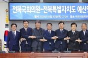 전국신문언론노동조합 김성길 기자 | 전북특별자치도가 30일 서울 국회의원회관에서 지역 국회의원 및 연고 국회의원 예산정책협의회를 연이어 개최했다. 2026년도 국가예산 국회단계 증액 확보를 위한 전방위 공조 체제를 본격 가동한 것이다. 오전 지역 국회의원 협의회와 정오 연고 국회의원 협의회로 나뉘어 진행된 이번 회의에서 김관영 지사는 도정 주요현안과 부처별 건의사업을 공유했다. 전북 지역 국회의원 예산정책협의회에서는 국회단계 증액이 필요한 주요사업의 역할분담을 모색했다. 효과적인 반영 전략을 수립하기 위해서다. 도는 올해 정부안 9조 4,585억 원을 확보했다. 하지만 새만금·AI·문화·복지 등 핵심 분야에서 과소·미반영된 70대 중점사업의 국회단계 반영 필요성을 강조했다. 특히 ▲국립모두예술콤플렉스 건립 ▲AI 융합 영화·영상 실증지원센터 건립 ▲협업지능 피지컬AI 기반 SW플랫폼 조성 ▲국립 의용소방대 연수원 건립 ▲새만금 국가정원 조성 ▲국립익산식품박물관 건립 ▲동물의약품 임상시험센터 구축 ▲기초연구인프라 연구시설 구축 ▲AI 기반 차세대 엑소좀 기술 및 표준화 개발 ▲전북 혁신도시 종합사회복