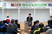 전국신문언론노동조합 강찬희 기자 | 장수군은 4일 농업기술센터 대강의실에서 교육생 80여 명이 참석한 가운데 ‘제24기 장수군 농업인대학’ 개강식을 개최하고 본격적인 교육 운영에 들어갔다. 이날 개강식은 최훈식 장수군수의 격려사를 시작으로 교육 일정과 운영 방향 안내, AI 활용 농업 경영 및 마케팅 특강 순으로 진행됐으며 변화하는 농업 환경에 능동적으로 대응하기 위한 교육의 출발을 알렸다. 올해 농업인대학은 △사과반 △두릅반 △신규농업인 기초영농반 등 3개 과정으로 운영되며 3월부터 11월까지 총 33회, 142시간에 걸쳐 체계적인 교육이 진행된다. 군은 각 과정마다 전문 강사진의 지도 아래 이론 교육과 현장 실습을 병행하는 방식으로 운영해 작목별 전문기술 습득과 농업 경영 역량 강화를 동시에 도모할 계획이다. 이를 통해 농업인들이 생산기술뿐만 아니라 경영과 마케팅 능력을 함께 갖춘 전문 농업인으로 성장할 수 있도록 교육의 실효성을 높이고자 한다. 특히 군은 최근 농업 분야에서도 디지털 전환이 가속화되는 흐름을 반영해 AI 기반 농업 경영과 온라인 마케팅 전략을 접목한 특강을 마련해