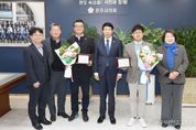 전국신문언론노동조합 강찬희 기자 | 전주시의회 김성규(효자2·3·4동), 김정명(동서학,서서학,평화1·2동) 의원이 전주시의회 행정사무감사특별위원회가 뽑은 ‘2025 행정사무감사 우수위원’에 선정됐다. 12일 전주시의회는 남관우 의장과 김원주 운영위원장, 이남숙 행정감사특별위원장 등이 참석한 가운데 의장실에서 김성규, 김정명 의원에 대해 행정사무감사 우수위원 감사패 수여식을 가졌다. 행정사무감사특별위원회 소속 의원들은 최근 감사 활동이 우수한 의원 2명을 행정감사 우수위원으로 선정했다. 남관우 의장은 “두 의원이 행정사무감사에서 논리적인 정책 비판과 시정 전반에 대한 문제점 지적, 대안 제시 역할로 전주시 발전에 공이 많았다”고 평가했다. 지난달 18~26일 진행된 행정감사에서 김성규 의원은 실패한 드론축구월드컵, 무리하게 추진된 명품하천조성사업, 김정명 의원은 20억원 세금 날린 전주시 재활용시설 증설 취소, 장애인전용주차구역 과태료 개선 시급 등의 문제를 날카롭게 지적했다. 수상 의원들은 “시민의 뜻을 대변하는 의원으로서 당연히 해야 할 일을 했을 뿐인데 너무나 큰 상을 받게 된