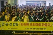 전국신문언론노동조합 김성길 기자 | 제주특별자치도는 핼러윈데이를 맞아 10월 31일 오후 7시 많은 인파가 모이는 제주시청 일원에서 ‘민・관・경 합동 현장점검 및 순찰 캠페인’을 전개하고, 100여 명이 참여해 범죄와 안전사고 예방활동을 펼쳤다. 이번 캠페인은 ▲연동 누웨마루 거리 ▲한림읍 ▲서귀포 매일올레시장 일원 ▲탐라문화광장 ▲연동 상가밀집지역에 이어 여섯 번째로 열린 ‘안전한 우리 마을 만들기’캠페인이다. 핼러윈데이 축제 분위기 속에서 안전의식을 높이는 특별한 행사로 마련됐다. 이날 행사에는 제주도 안전건강실과 자치경찰단, 제주시 안전교통위생국, 동부경찰서, 제주시 주민봉사대 및 안전보안관, 자율방범대와 지역자생단체 등 100여 명이 참여했다. 제주시청 상가밀집지역을 중심으로 방범순찰과 안전점검을 실시하고, 핼러윈데이와 관련한 기초질서 지키기 홍보활동도 병행했다. 특히, 제주시청 상가밀집지역은‘제주의 대학로’로 불릴 만큼 청년층과 관광객이 많이 찾는 지역으로, 야간 유동인구가 많은 만큼 범죄 및 안전사고 예방과 기초질서 확립에 중점을 뒀다. 핼러윈데이인 이날 연동 누웨마루거리,