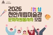 전국신문언론노동조합 강찬희 기자 | (재)천안문화재단은 오는 19~ 30일 천안시립미술관 문화자원봉사자를 모집한다고 14일 밝혔다. 문화자원봉사자로 선발되면 오는 3월부터 내년 2월까지 관람 안내, 전시·교육·행사 지원 등의 활동을 하게 되며, 봉사실적 인정, 기초·전문 교육, 소정의 활동비 지급 등의 혜택이 제공된다. 모집 대상은 문화예술에 관심이 있는 20세 이상 성인으로, 1차 서류 심사와 2차 인터뷰 심사 등을 통해 내달 30명 내외를 선발할 예정이다. 지원 신청은 천안시립미술관 누리집에 게재된 공고문을 확인한 후 신청서 양식을 내려받아 담당자 이메일로 접수하면 된다. 자세한 사항은 천안시립미술관 누리집을 참고하거나 시각예술팀으로 문의하면 된다.
