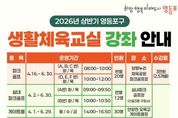 전국신문언론노동조합 강찬희 기자 | 영등포구가 구민의 건강 증진과 생활체육 활성화를 위해 올해 상반기 생활체육 교실 참여자를 모집한다고 밝혔다. 이번 상반기 생활체육 교실은 파크골프, 실내 파크골프, 게이트볼, 요가, 댄스스포츠, 라인댄스, 당구 등 7개 종목, 총 17개 교실로 운영된다. 구는 구민들의 다양한 생활체육 수요를 반영해 종목을 구성했다. 특히 올해 구는 파크골프에 대한 구민들의 높은 관심을 반영해 ‘실내 파크골프 교실’을 신설했다. 수업은 영등포구 실내 파크골프장 3호점(신길3동 구청사)에서 진행되며, 날씨에 영향을 받지 않는 실내 공간에서 보다 쾌적하고 안전하게 파크골프를 배울 수 있도록 했다. 수업은 4월부터 약 3개월간 운영한다. 반별 모집 인원은 20명 내외이며, 교육 장소는 종목별로 다르다. 신청은 파크골프 종목이 3월 9일까지, 실내 파크골프를 포함한 그 외 종목은 3월 12일부터 3월 18일까지 받는다. 참여를 희망하는 구민은 서울시 공공서비스예약 누리집 ‘교육강좌’ 게시판을 통해 온라인으로 신청하거나, 신청 기간 내 구청 본관 5층 체육진흥과를 방문해 접수하면 된다. &
