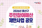 전국신문언론노동조합 강찬희 기자 | 서울 용산구가 4월 24일까지 2027년 예산에 반영할 주민참여예산 사업을 공모한다. 생활안전, 문화, 복지 등 주민 생활과 밀접한 분야를 대상으로, 총규모는 10억 원이다. 일반사업은 사업당 2억 원 이내, 행사성 사업은 1500만원 이내로 제안할 수 있다. 단, 이미 시행 중인 사업이나 법령‧조례상 부적합한 사업, 구 소관사무가 아닌 사업, 특정 민간단체지원을 목적으로 하는 사업 등은 선정 대상에서 제외한다. 사업 제안은 용산구민과 용산구에 소재지를 둔 사업체 임직원이나 학생이라면 모두 가능하다. 신청은 기간 내 ▲구 누리집 ‘참여소통-주민참여예산제-용산구 예산 이렇게 사용해주세요!’ 게시판 ▲방문(용산구청 기획예산담당관 및 각 동주민센터) ▲우편(녹사평대로 150, 8층 기획예산담당관) ▲전자우편 중 편한 방법으로 제출하면 된다. 제안 양식은 구 누리집 ‘주민참여예산 게시판’에서 내려받을 수 있다. 접수한 제안 사업은 ▲동 지역 회의 ▲소관부서 검토 ▲주민참여예산위원회 심사 절차를 거쳐 최종 선정한다. 이후 구의회 심의를 통해 2027년 예산으로 확정할 예정이다. 주민참