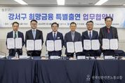 전국신문언론노동조합 강찬희 기자 | 서울 강서구는 경영에 어려움을 겪는 중소기업과 소상공인을 지원하기 위해 ‘희망금융 특별신용보증’ 사업을 시행한다. 이번 사업은 시중보다 낮은 금리로 경영자금을 지원하며, 총 보증 규모는 275억 원이며 업체당 최대 5천만 원까지 지원받을 수 있다. 대출금리는 기준금리에 대출자의 신용도 등을 반영한 가산금리(1.6~1.8%)를 더하고, 서울시 이자 지원분(1.8%)을 차감해 산정된다. 2월 말 기준 약 2.61~2.81% 수준이다. 앞서 구는 지난 6일 강서구청 대회의실에서 우리은행, 하나은행, 신한은행, 새마을금고, 서울신용보증재단과 ‘희망금융 특별출연 업무협약’을 체결하고, 총 22억 원을 공동 출연했다. 서울신용보증재단은 이를 바탕으로 출연금의 12.5배인 275억 원 규모의 신용 보증을 지원한다. 대출 기간은 5년으로, 1년 차에는 이자만 납부하고 이후 4년간 원금과 이자를 함께 상환하면 된다. 대출금은 운전·시설·기술개발 자금으로만 사용할 수 있으며, 다른 용도로 사용할 경우 이자 지원을 받을 수 없다. 또한 사치, 향락 등 재보증 제한업종,