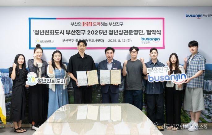 전국신문언론노동조합 이의용 기자 | 부산광역시 부산진구는 8월 12일 부산진구청에서 ‘청년친화도시 부산진구 2025년 청년상권운영단’ 협약식을 개최하고 전포사잇길 청년상인회 기반 단체인 좋은사잇을 올해 청년상권운영단으로 공식 출범시켰다.