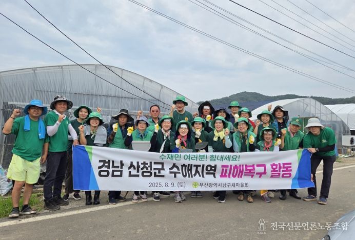 전국신문언론노동조합 이의용 기자 | 부산광역시 남구새마을회(회장 윤형곤)는 2025년 8월 9일, 최근 집중호우로 큰 피해를 본 경상남도 산청군 신안면을 찾아 수해복구 봉사활동을 실시했다.