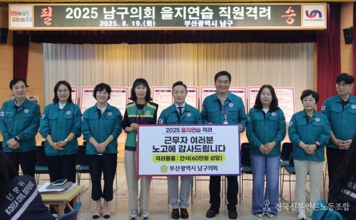 전국신문언론노동조합 이의용 기자 | 부산광역시 남구의회는 8월 19일 ‘2025 을지연습’이 진행 중인 남구청 종합상황실을 방문하여 훈련 상황을 참관하고 현장 근무자들을 격려했다.