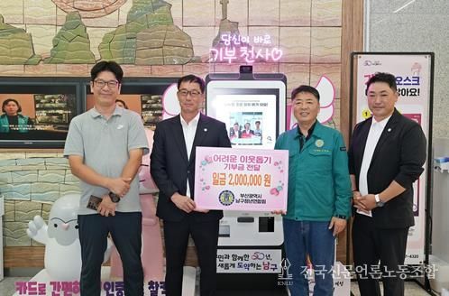 전국신문언론노동조합 이의용 기자 | 지난 19일, (사)부산광역시 남구청년연합회가 남구에 어려운 이웃을 돕기 위한 성금 200만 원을 전달했다.