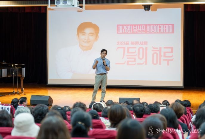 전국신문언론노동조합 이의용 기자 | 부산 부산진구는 9월 3일 오후 2시, 구청 대강당에서 제76회 ‘부산진 희망아카데미’ 차인표 작가 북콘서트 그들의 하루를 성황리에 개최했다고 밝혔다.