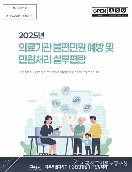 전국신문언론노동조합 김성길 기자 | 제주특별자치도가 민원 응대 공무원과 의료기관 종사자가 같은 기준으로 민원을 판단하고 처리할 수 있도록 ‘2025년 의료기관 불편민원 예방 및 민원처리 실무편람’을 제작해 배포한다.