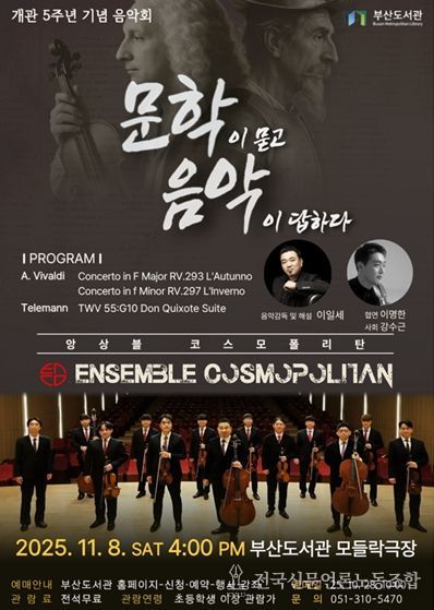 전국신문언론노동조합 조창제 기자 | 부산도서관 개관 5주년 기념음악회 '문학이 묻고 음악이 답하다'에 참여하여 깊어가는 가을 아름다운 음악으로 가슴 따뜻한 추억을 만들어 보세요!