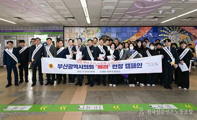 전국신문언론노동조합 조창제 기자 | 부산광역시의회는 10월 29일 오늘 오전 8시, 도시철도 사상역 역사 및 야외 열린공간에서‘부산광역시의회 공익캠페인 '배려〉’ 현장 캠페인과 함께‘찾아가는 현장소통’제2회 행사를 통합 개최했다.