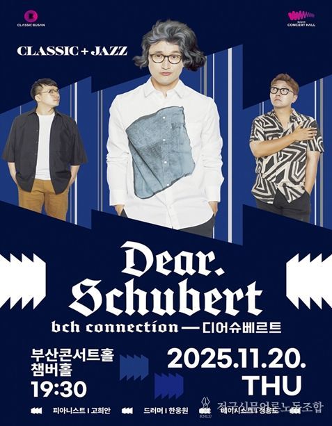 전국신문언론노동조합 조창제 기자 | 부산시 클래식부산은 오는 11월 20일 저녁 7시 30분 챔버홀에서 ▲피아니스트 고희안 ▲드럼 한웅원 ▲베이스 정용도와 클래식부산 오케스트라 수석들이 주축이 된 '부산콘서트홀 커넥션-디어 슈베르트'의 공연을 개최한다고 밝혔다.